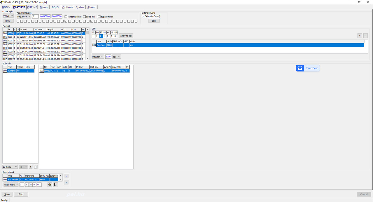 I created the .sup file with easySUP. Once created, I multiplexed it along with the original audio and movie using txmuser, as a Blu-ray folder. Once I had the 7 folders (there are 7 episodes), I renamed the .clpi and .m2ts files to replace them with their corresponding names from the original. Then, using BDEdit, I found the playlist of episodes in 0000.m2ts, and in STN, I added the subtitle to each episode with pid 1200, m apply to clpi and save (images 1 and 2). ![]() ![]() When I test the Blu-ray, it doesn't behave like the original. Let me explain. The original starts with the opening ads and then goes straight to the first episode (all this was tested on Blu-ray with Leawo Blu-ray Player), and from there I can access the menu. However, the modified Blu-ray, once it finishes the opening ads, goes directly to the menu. When I try to select any episode, the screen goes black for 5 seconds and then returns to the menu, so I can't watch the episodes. I would appreciate the help of experts to solve my problem. Regards |