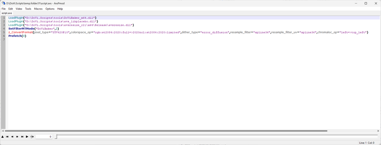 avs+ [FLAW]: Error loading file: Script error: Invalid arguments to function 'z_ConvertFormat'. (D:\DoVi.Scripts\temp.folder31\script.avs, line 5) x265 [FLAW]: unable to open input file <D:\DoVi.Scripts\temp.folder31\script.avs> Error: The file 'D:\DoVi.Scripts\Gladiator_II_2024_4K_002_DV-FEL_to_DVP8-HDR10.hevc' could not be opened for reading: open file error. |