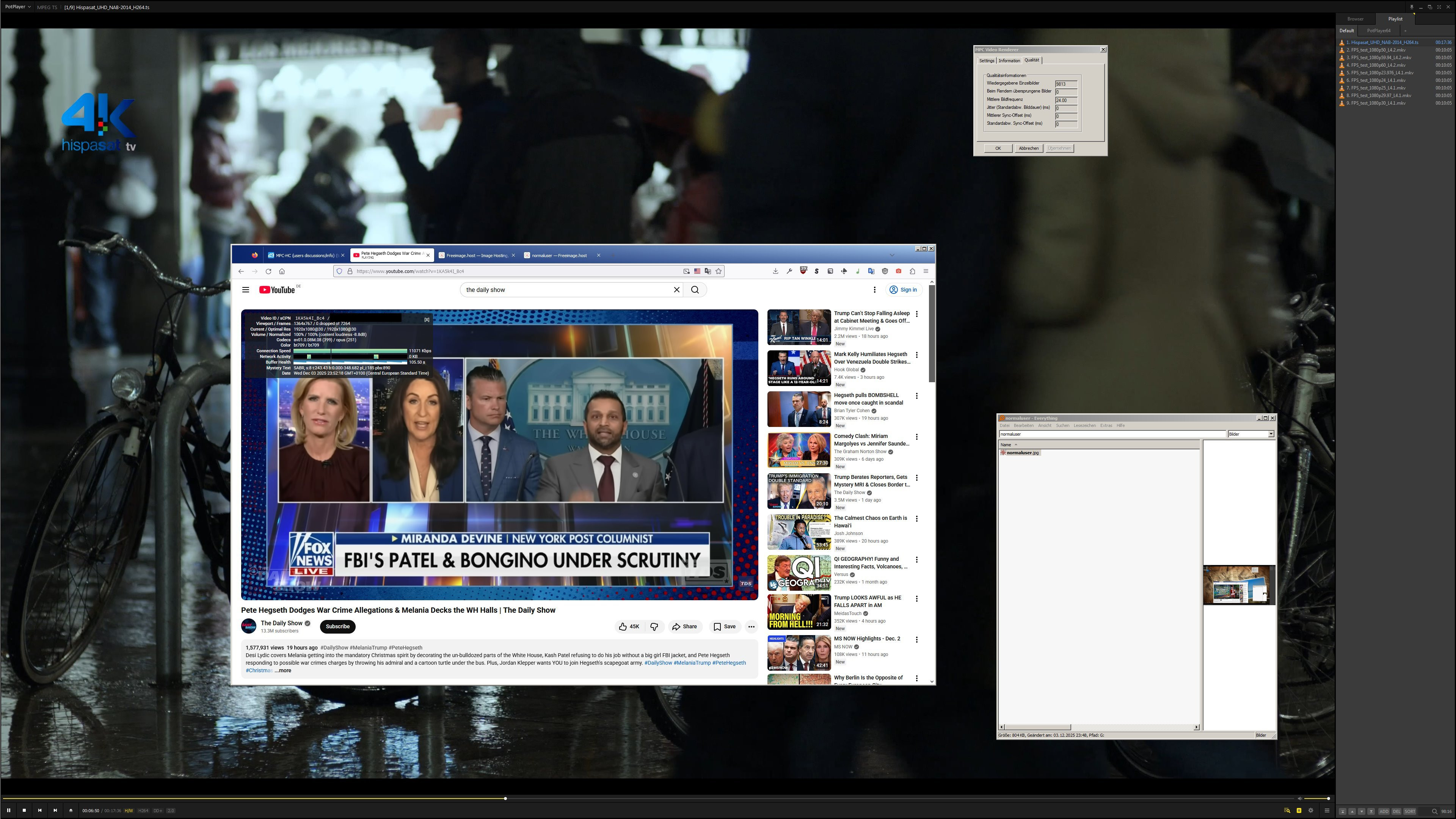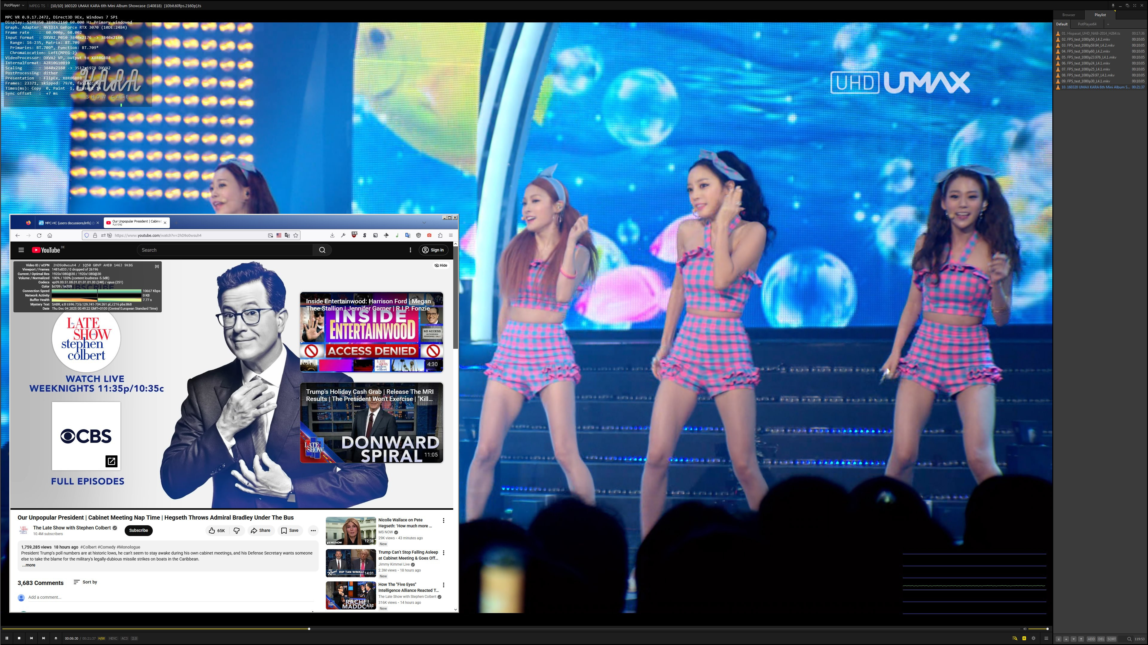 ![]() ![]() Doing this test right is not easy when Firefox writes the last life space possible for its Database This test Mix from Sony conducted with the Politecnica Madrid and TVE and Dolby Lab Film test (HDR) showcases 2 very important factors one is correct Motion Blur in Film and one is Missing Motion Blur in different situations and its stutter perception at film speed (The Art Gallery Test) (failing Ken Burns perception involving very high frequency cracked oil paint perception). ![]() And it really showcases the efficiency of your Transport Stream Handling In Potplayer you can partly simulate the ken burn on the timeline preview so performant low latency it seeks That combination can do some Magic in certain scenarios MPCVR stability inside Potplayer is perfect maybe perfect is not the right word lets say its on a very high level of perfection working together. ![]() Of course you can still do evil things and brake it that nice slider bar to EVIL (who cant resist to move it ?) ![]() Lets open the GATES ![]() Now we open the door in a secure way ;-) ![]() ![]() Some might want to know how many tabs in Firefox those are 123 with 14 Extensions Some might think wait you got maybe 16 GB Physical but there's 35 GB (good eyes boy/gal), yeah Playstation 5 trick works since centuries UMA even if Sony/AMD made it look like something extra Special (hardware detail wise it is in their case but general no) and this here is a Playstation 5 comparable System fully cloned to be in the range of it. But for you it's more important what you see not what i say ![]() and what some applications want to tell you here which is absolute nonsense ![]() But there is also a big drawback when MPC Video Renderer is in a fullscreen mode recovering that back can take some time. Seek still working but playback no chance need to reload the stream could be a UMA issue resambles the same problem but different cause as the MPC-BE Parser seek stop problem interesting. Ah fuck i still have the Evil Gate enabled WOW end result froze the System in the end with Potplayer + MPCVR had to hard reboot could draw a lot of System Information windows on MPCVRs surface before it froze entirely no chance to recover fucked the driver fucked the kernel, nice ![]() So lets see what this can do with a normal user with 1 firefox tab in his forum and watching some video opening another google doing some normal things Firefox Engine on MPCVR surface what happens when we move it, this can happen but it can recover so its not completely dead ![]() Normal AVG user (Mr/Ms Normal Dude/y) ![]() ![]() This is tricky it does the sync to 30 or it can only do max 30 ? the vblank double sided sword ![]() That 79 frame skip was now either a bitstream peak over the VP11 or a transport stream issue bitstream peak that long ehhhh nope transport stream brake hmmm more likely do the peaks really get that more bad in MPCVR than soon a lot more peaks will arrive and put it on it's knees ![]() ![]() Here the Peak Showtime is maybe starting or the Parser and Renderer will do Magic ![]() The Peaks are here but the Graph doesn't recognize them but the counter recognizes the drops The Graph is slower in showing them then the counter reacts not as efficient trackable as with MPC-BE but it recognizes the fluctuations and it trys to compensate itself to 59 this was never a 60 int broadcast You could transmit data like this nobody would ever realize it you just must be very precise on the send and receive side wow the iead is crazy instead of the datastream you hide it in errors and fluctuations everyone would look in the data and bitstream but who would suspect data in errors and fluctuations. The first transmission part seems clear 60p int but the 2nd. They ran the Cameras and Encoder in the first part sync on 60 int and in the 2nd they switched one makes perfect sense not. ![]()